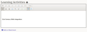 Hardcode within existing text boxes a place for 21st Century Skill consideration.
