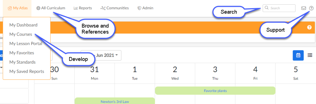 - The Develop link is renamed My Courses, appearing under My Atlas