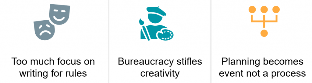 It also makes us as teachers less effective in what we are presenting to the students. We build units that address a list of things to cover and this stops us thinking first about what great things there are to explore. Planning becomes a chore, something done to impress an inspection, but planning is the room for ideas and things to try out. Focussing on the rules makes us think we must get it correct and not change it, planning for purpose needs constant reflection and reinvention and even embraces things going wrong: