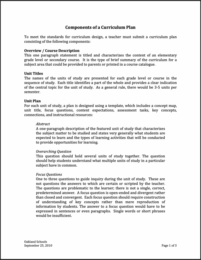 Components of a Curriculum Plan - View PDF