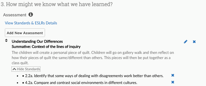 Referring back to the standards that we agreed would be assessed in the unit allows for easy and quick planning of formative and summative assessments and that these assessments are common across the grade level.