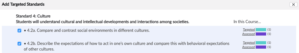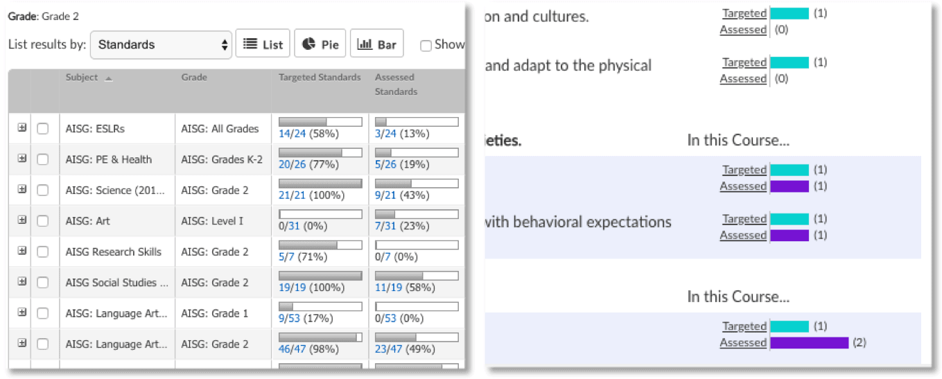 - Run reports on targeted and assessed standards.