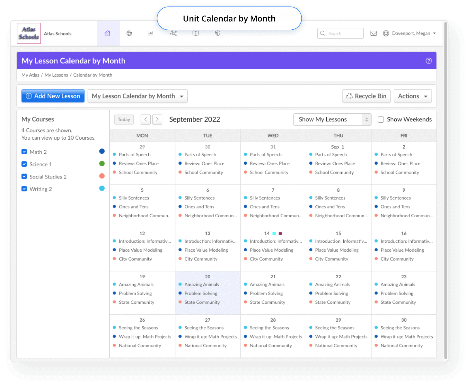 As a teacher, this is the most popular place to go for day-to-day lesson management. If you have utilized the new Unit Calendar by Month view, you will notice some similarities. Here are a few of our favorite features: