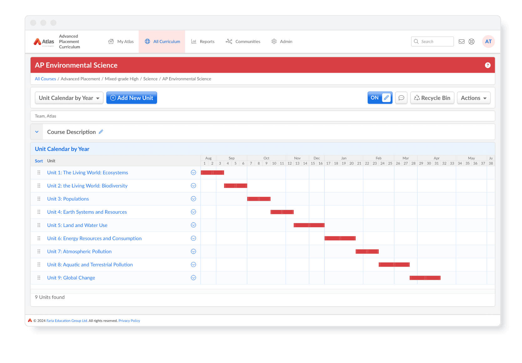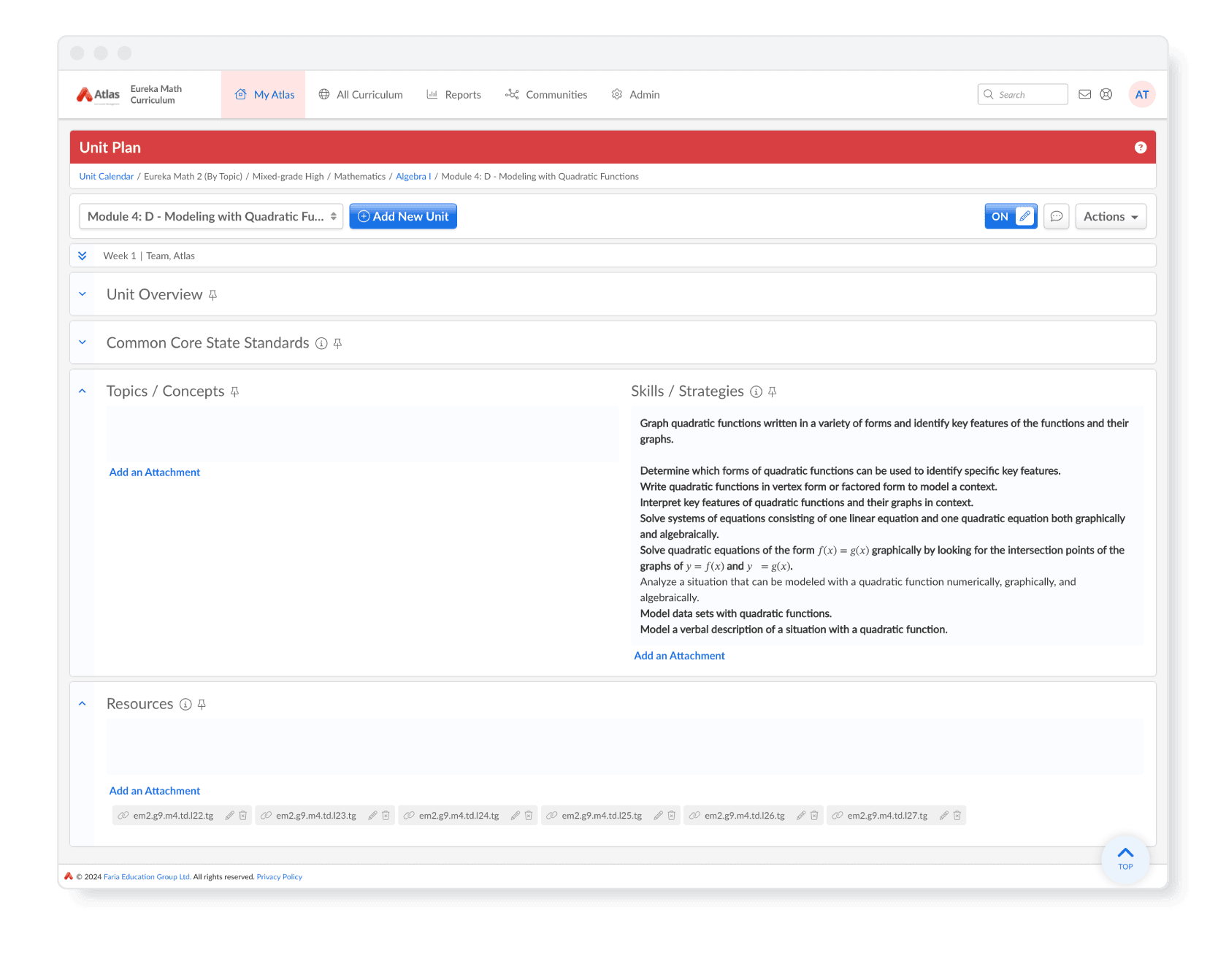 For subject area teams using a published curriculum adopted by a school or district/diocese, importing curriculum maps into their Atlas site allows teachers to begin tailoring and implementing their new curriculum.