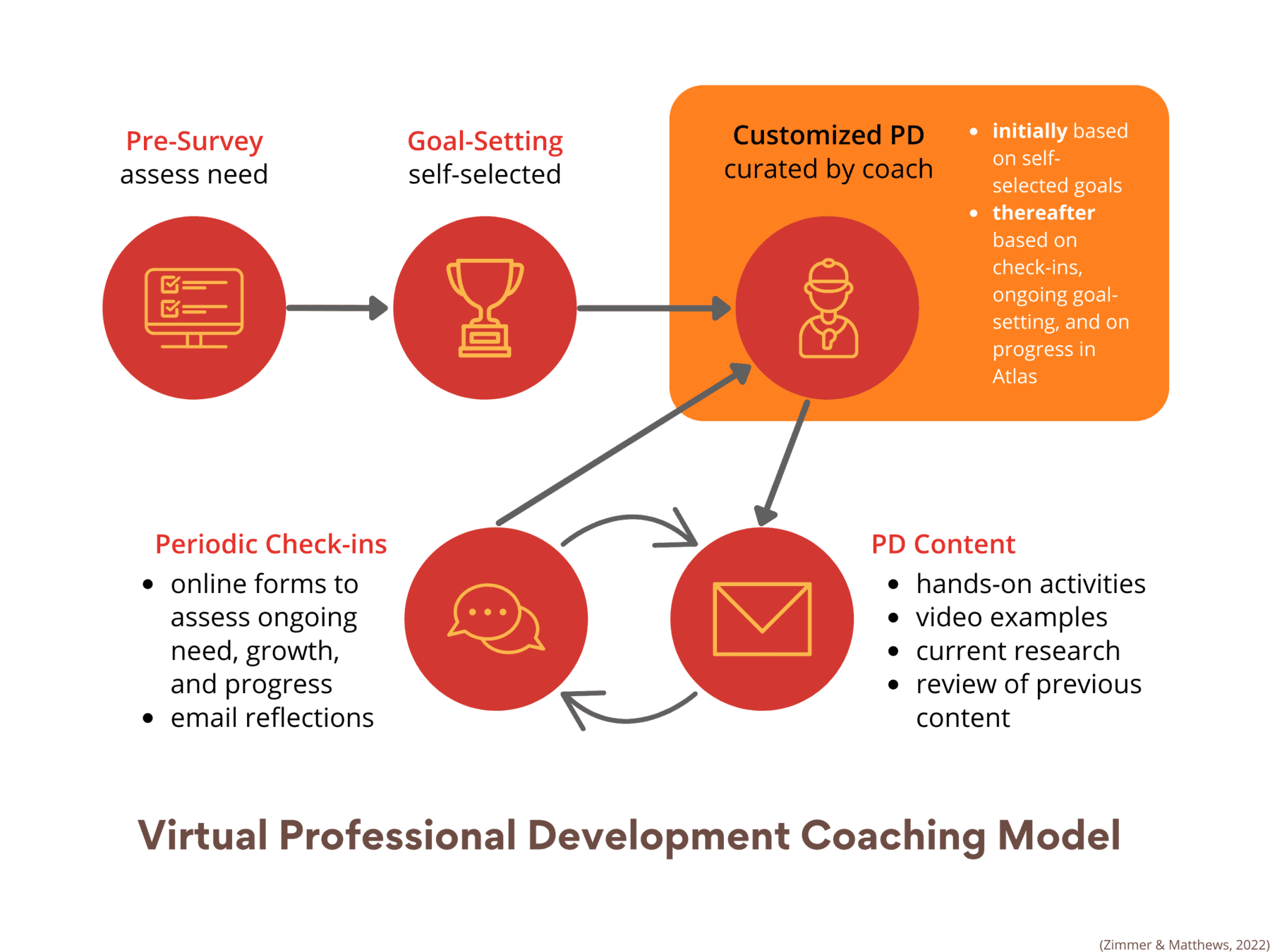 Zimmer, W. K., & Matthews, S. D. (2022). A virtual coaching model of professional development to increase teachers' digital learning competencies. Teaching and Teacher Education, 109, 103544. https://doi.org/10.1016/j.tate.2021.103544