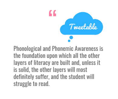 As you can see, there are several skills and components that come before phonemic awareness. These foundational skills are so important that Orton Gillingham cites difficulties in phonological and phonemic awareness as the most common cause of poor reading.