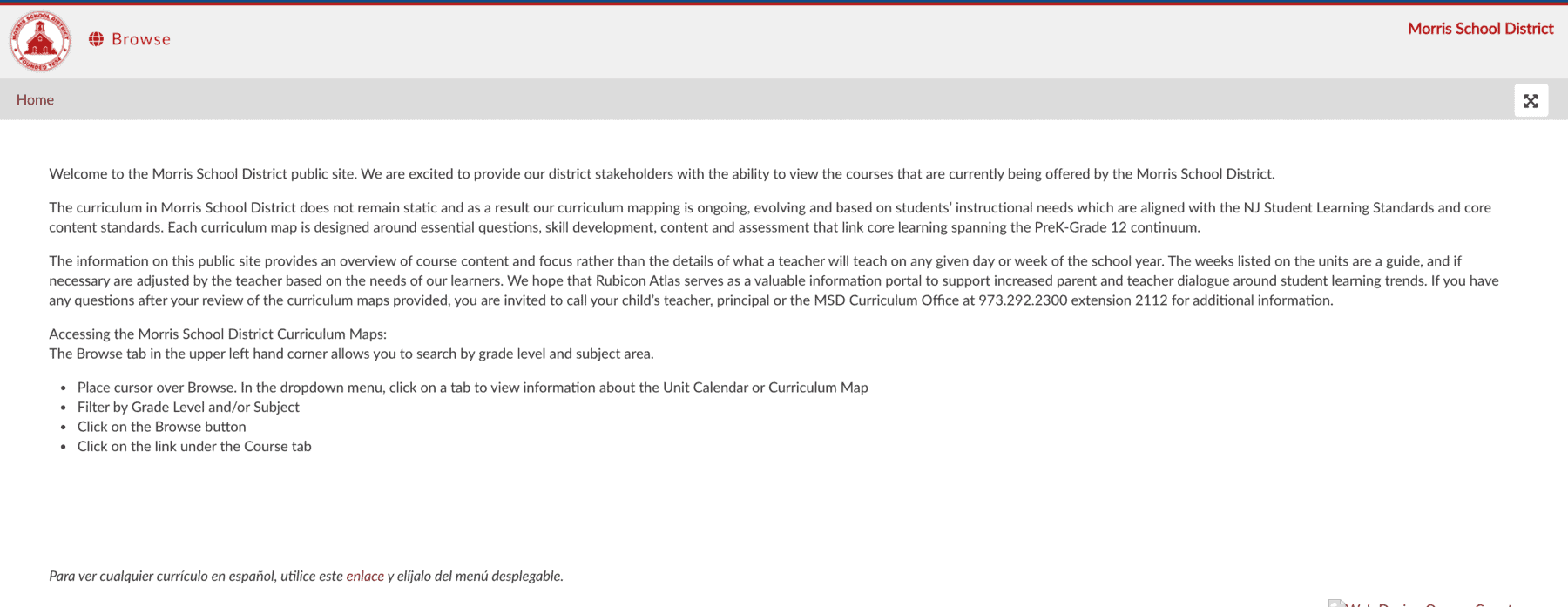 Morris School District’s opening page of their curriculum site helps provide an overview of the curriculum and its purpose. Brian Young explained that they made their public site available by posting it directly on the district website for convenient access.
