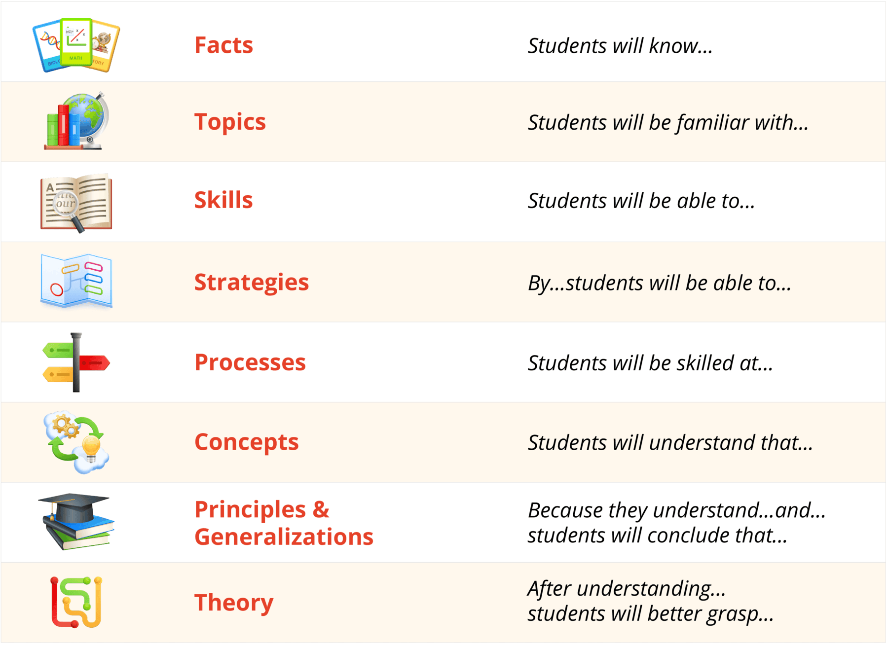As teachers, we use sentence frames to support our students as a scaffold. As curriculum writers, using thoughtful sentence frames is a helpful strategy to distill our ideas and expertise into a functional unit plan and curriculum map. A common strategy for stemming our statements in specifying desired outcomes for students is to reference the Revised Bloom’s Taxonomy, Webb’s Depth of Knowledge, or Costa’s Levels of Inquiry. While these are useful frameworks to help calibrate the level of thinking that we would like students to engage in, their application can be restricting. Consider these updates to your sentence frames to aid in the articulation of your components of your mapping.