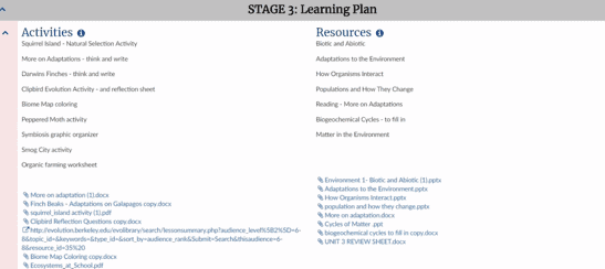 For this blog I’ll use the unit titled Natural Selections in Adaptations. After selecting the DCI MS-LS4B: Natural Selection, I chose the standards that were associated with my unit and in this case, there were 5 standards.