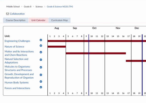 Armed with NGSS, a blank course map, and my enthusiasm, I asked myself, “Where do I start?” From former experience in pharmaceuticals and my teacher training, I was comfortable with the idea of backwards planning. So, I started with Stage 1 and decided to start by breaking up the course into units and load them into the Atlas calendar.